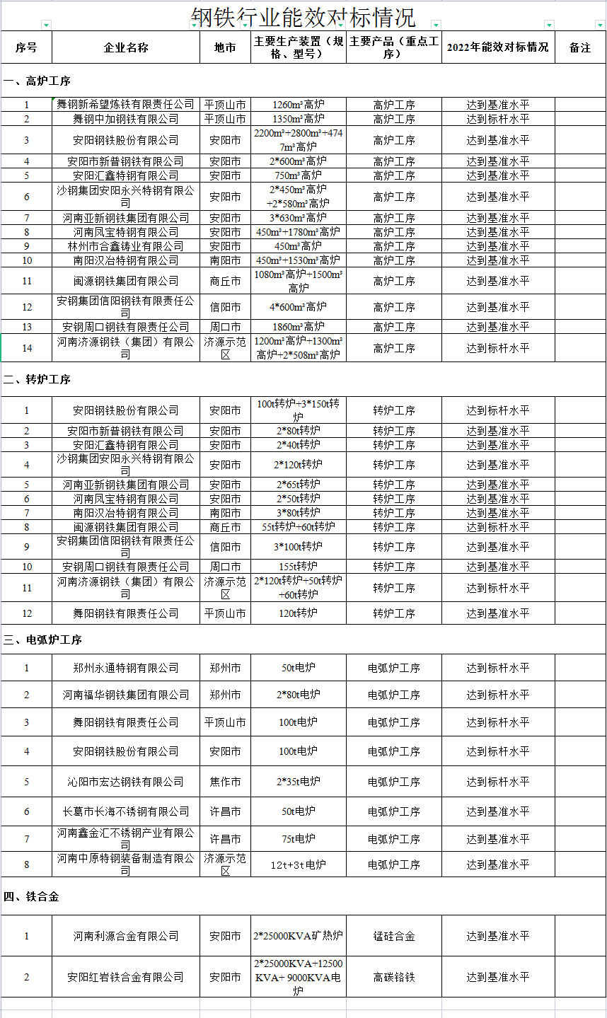 河南公示2022年鋼鐵行業(yè)能效對標(biāo)情況