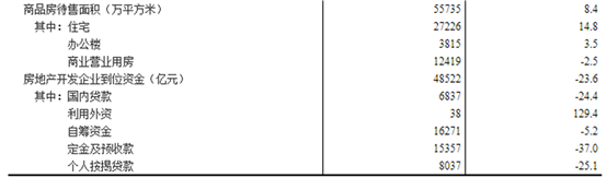 1—4月份,房地產(chǎn)開發(fā)企業(yè)到位資金48522億元,同比下降23.6%。其中,國內(nèi)貸款6837億元,下降24.4%;利用外資38億元,增長129.4%;自籌資金16271億元,下降5.2%;定金及預收款15357億元,下降37.0%;個人按揭貸款8037億元,下降25.1%。