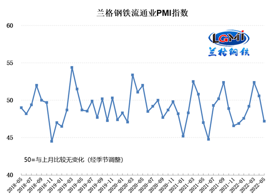 蘭格發(fā)布:5月鋼鐵流通業(yè)PMI為47.2% 行業(yè)景氣度弱勢下行