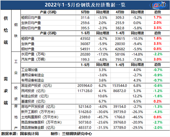 蘭格追蹤:1-5月鋼鐵及經(jīng)濟(jì)數(shù)據(jù)一覽