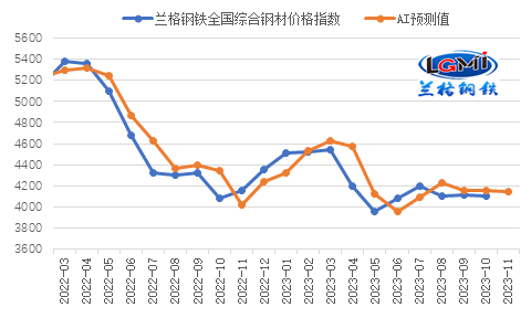 圖5 蘭格|騰景鋼鐵綜合價(jià)格指數(shù)AI預(yù)測(cè)(元/噸)